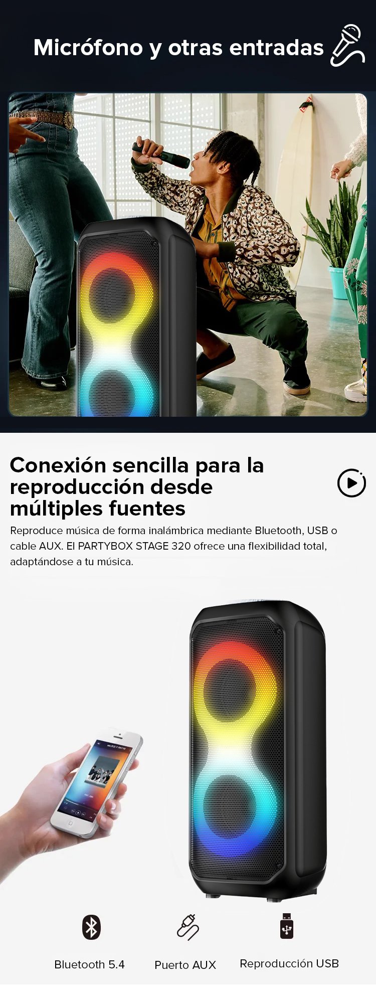Altavoz Bluetooth portátil con micrófono incorporado y bajos potentes